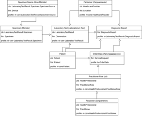 Model overview of FHIR profiles used in information standard Lab2Zorg for usecase LOA